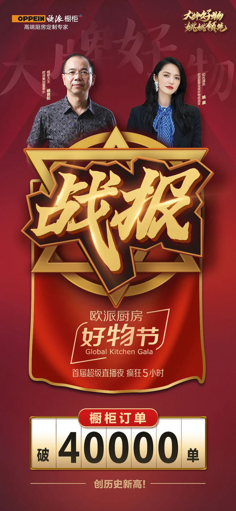 9月25日晚,人氣女王姚晨攜手歐派集團董事長姚良松同臺帶貨,這場特別的“跨界聯手”最終斬獲10萬報名、4萬訂單,“首屆歐派廚房好物節”旗開得勝。